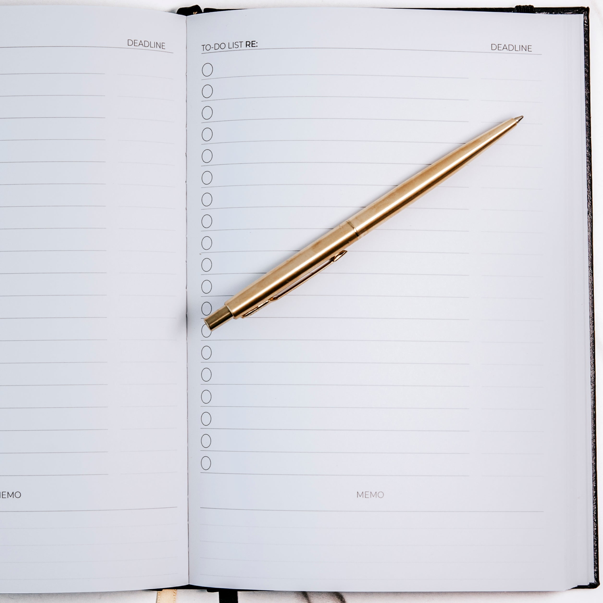 Balance your notes and to-dos with this double layout notebook. The first half features lined pages and the second half is filled with structured to-do list pages—giving you space to both brainstorm and take action.